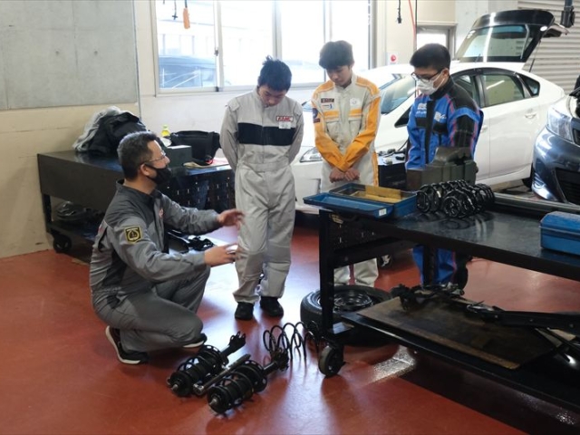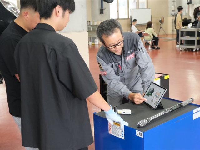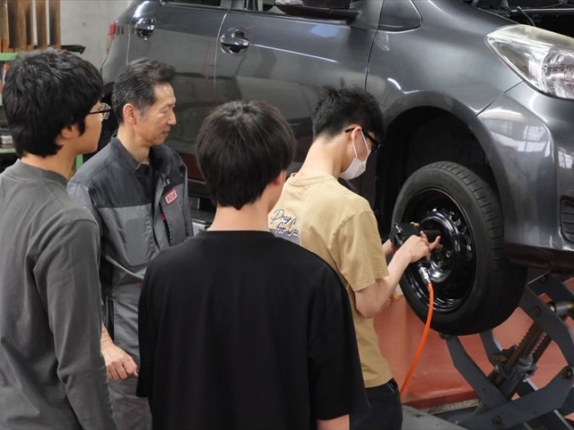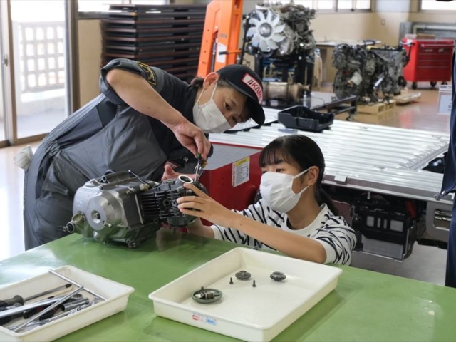 学校見学の内容に加え、実際にクルマやバイクに触れて、工具の重みエンジンの振動を感じていただき、体験実習が行えます。